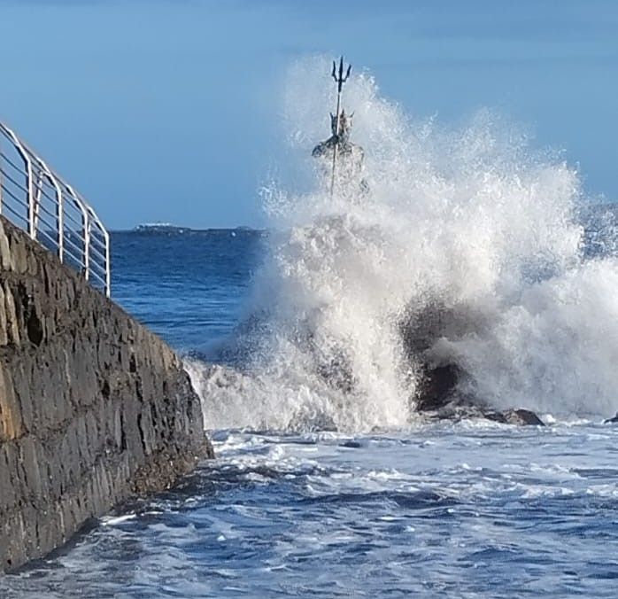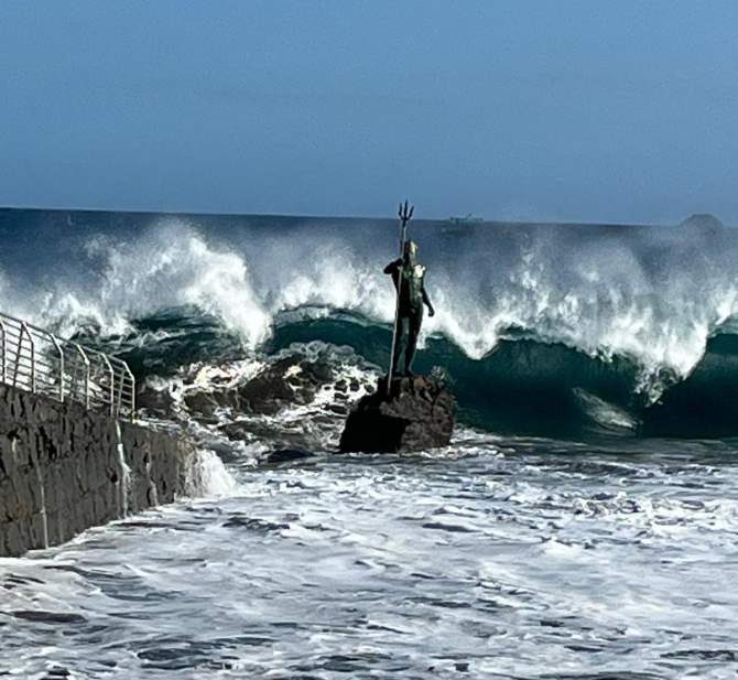 El temporal que azota las costas canarias, incluida la de Telde, ha dejado a su paso escenas impactantes que muestran la fuerza y la furia del mar. Uno de los ejemplos más visibles es el de las olas de gran tamaño impactando contra la escultura de El Neptuno, ubicada en el Puntón de la playa de Melenara.