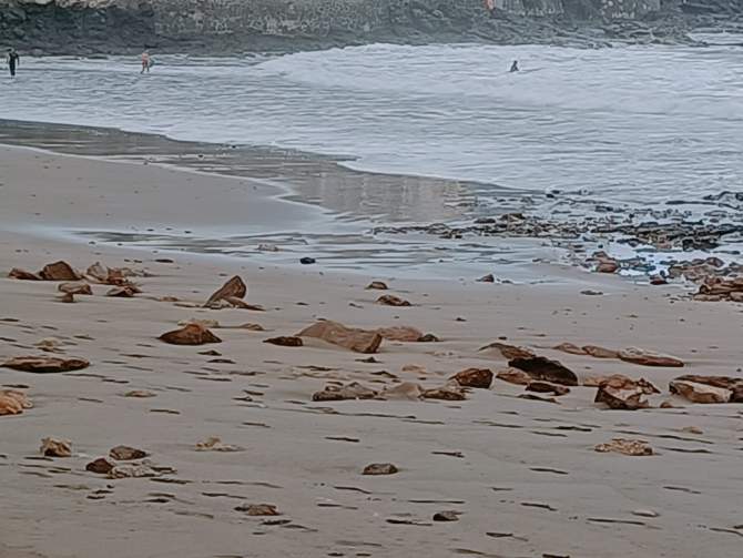 Además, en Salinetas, el mar logró llegar hasta las primeras líneas de viviendas, causando preocupación entre los residentes. Además, ha sacado a superficie las piedras dejadas por la última canalización abierta en la playa para la colocación del cable de fibra 2Africa.