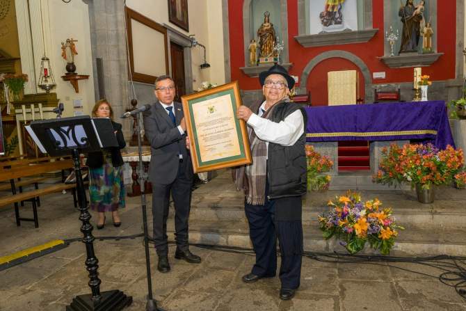 El Ayuntamiento de Valsequillo de Gran Canaria entregó el título de Hijo Predilecto del municipio al ranchero mayor del Rancho de Ánimas de Valsequillo, Agustín Calderín, durante un acto institucional que se celebró en la parroquia de San Miguel.