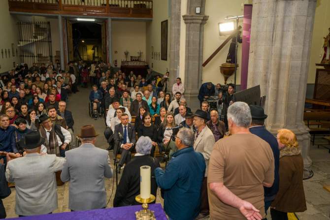 Una iglesia que se llenó de vecinos para acompañar a uno de los suyos en un día tan especial. De la mano del alcalde Francisco Atta y con todo el público en pie, aplaudiendo durante varios minutos, Agustín Calderín recibió este título por "el amor que profesa a su pueblo, vinculado al mundo de la cultura, concretamente, al Rancho de Ánimas de Valsequillo de Gran Canaria y a la artesanía, sabiéndose embajador de su pueblo preservando nuestras costumbres y tradiciones", señaló el primer regidor del municipio.