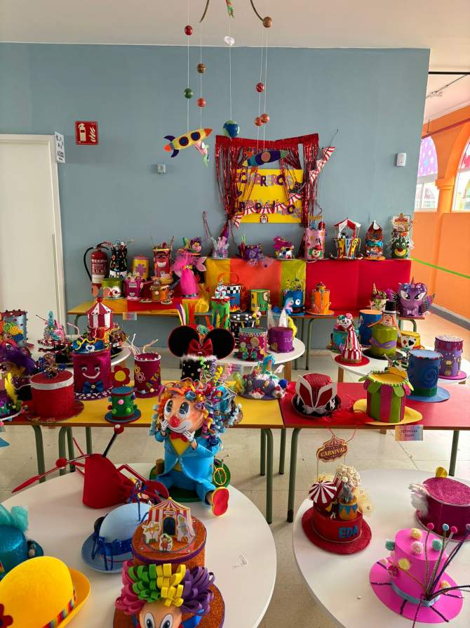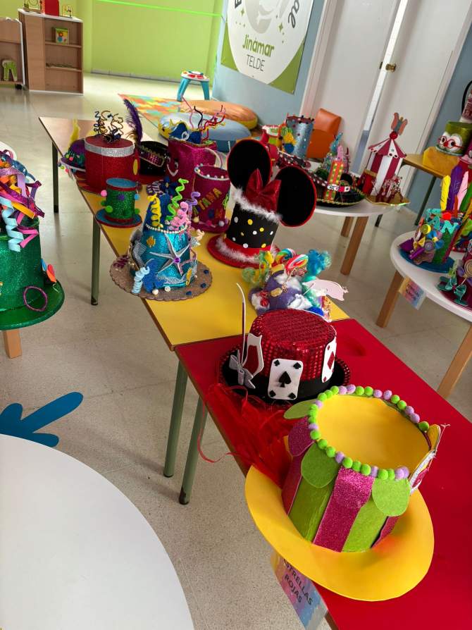 Los padres y madres de la Escuela Infantil de Jinámar se han esmerado para elaborar divertidos y originales sombreros para celebrar el Carnaval, que ahora están expuestos en este centro municipal de educación infantil.