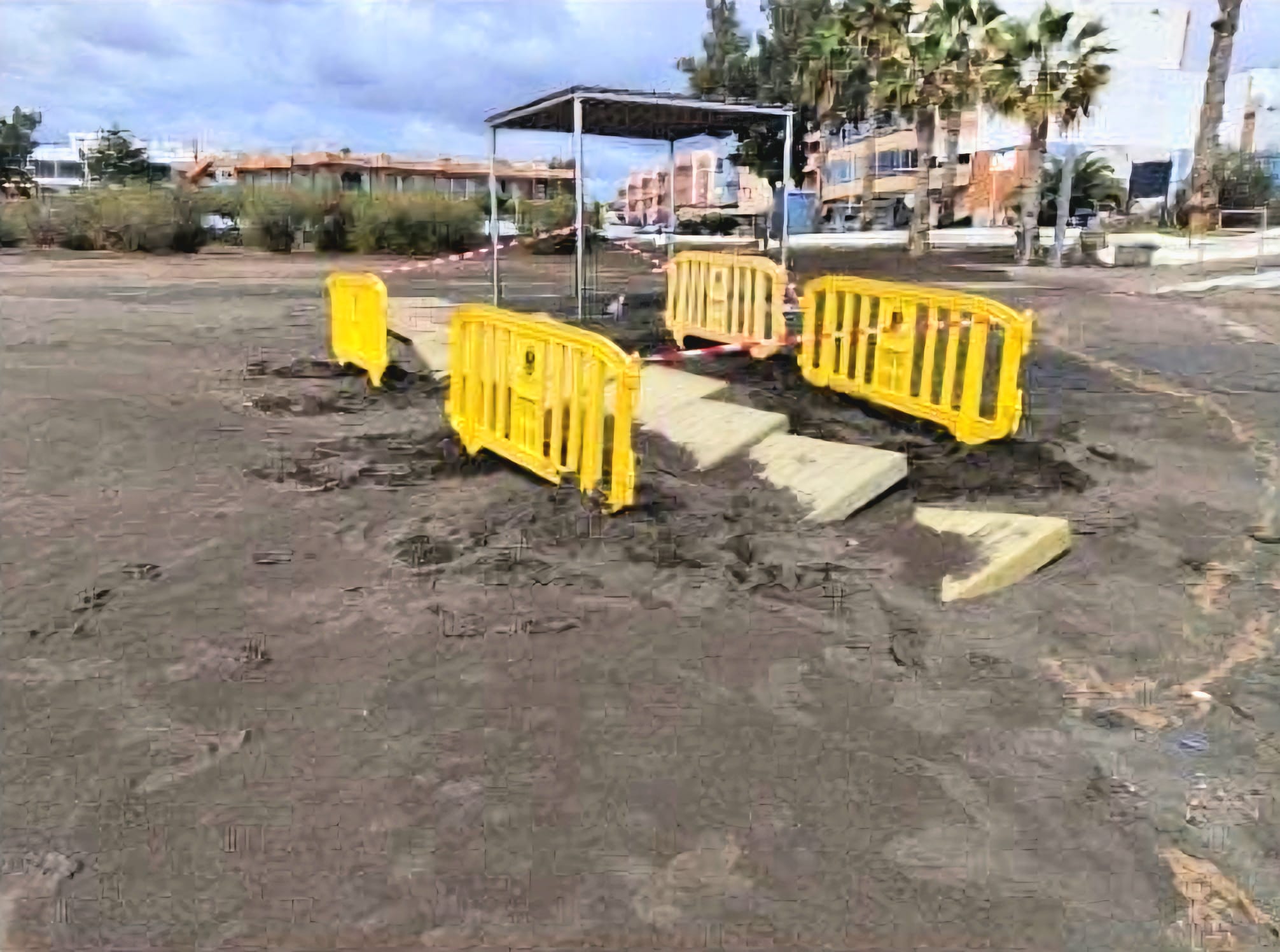 Entre las acciones realizadas, se destacó el vallado de las pasarelas de hormigón descalzadas por el fuerte oleaje en la playa de La Garita.