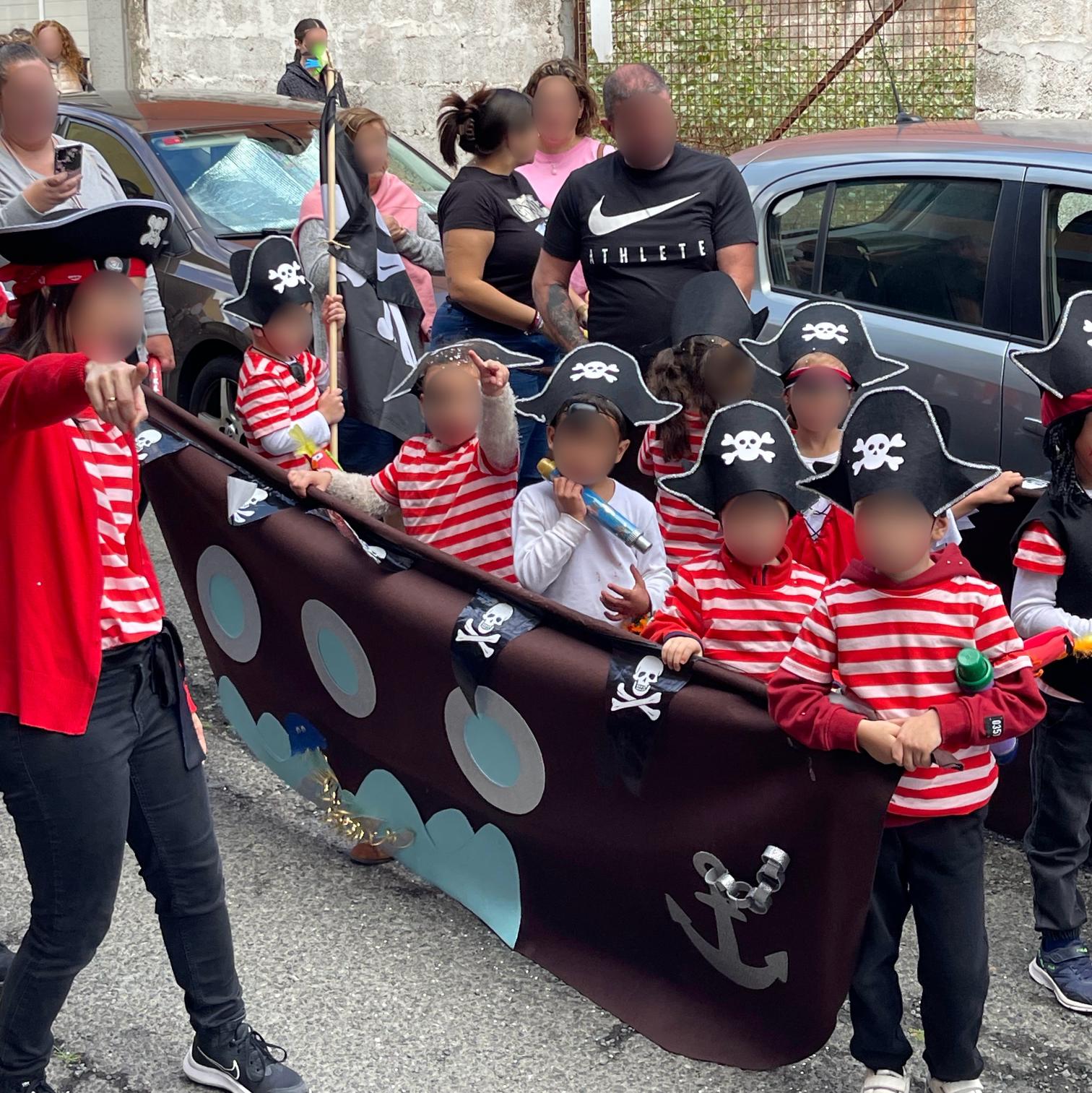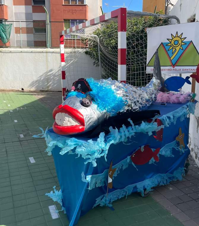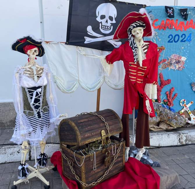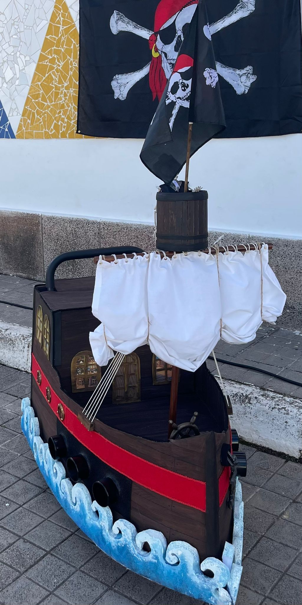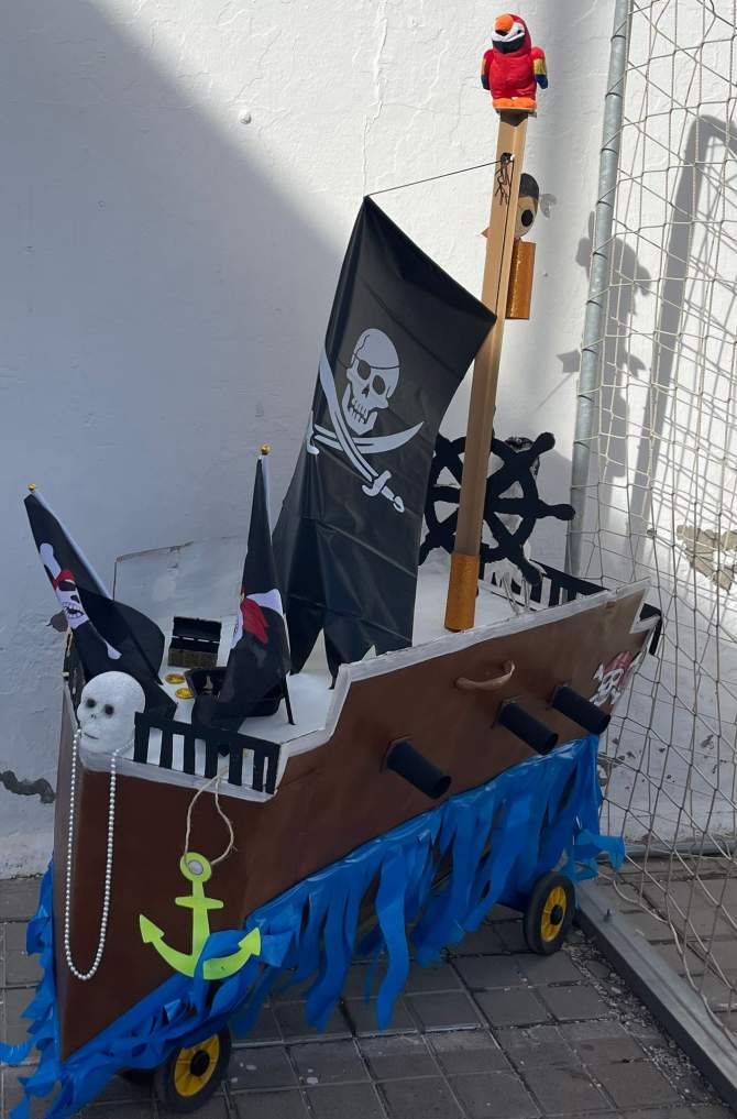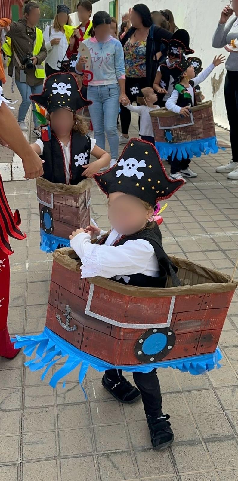 Las familias colaboraron con la decoración, inspirada en la temática, por lo que pudieron verse esqueletos y banderas piratas, cofres del tesoro, motivos del mar, una gran sardina y minibarcos piratas, elaborados en el colegio con las familias en un taller de minicarrozas.