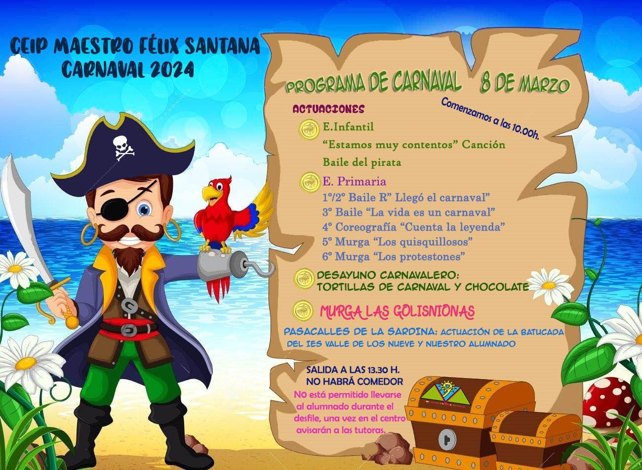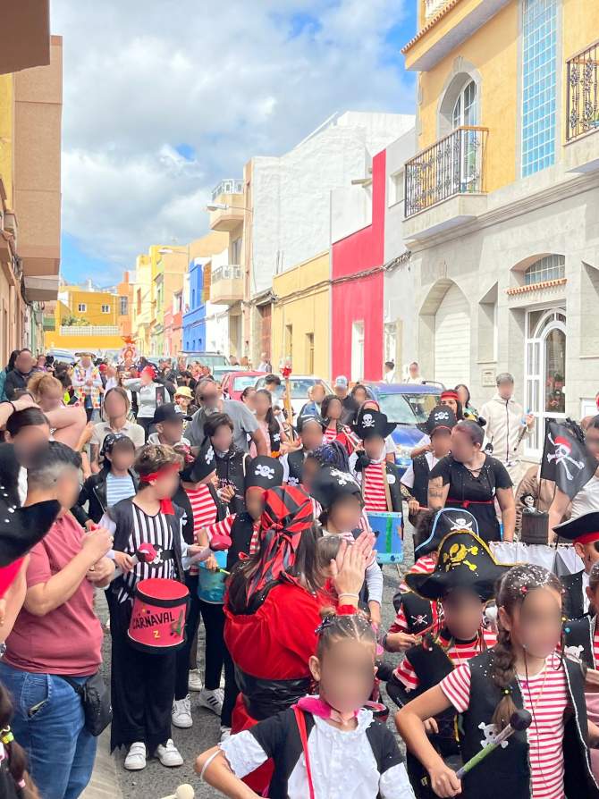 El pasado viernes 8 de marzo, coincidiendo con el Día Internacional de la Mujer, la comunidad educativa del CEIP Maestro Félix Santana (Valle de los Nueve) celebró su gran fiesta de Carnaval pirata. Antes de empezar el evento, el alumnado disfrutó de un desayuno carnavalero con las típicas tortillas de carnaval con chocolate caliente.