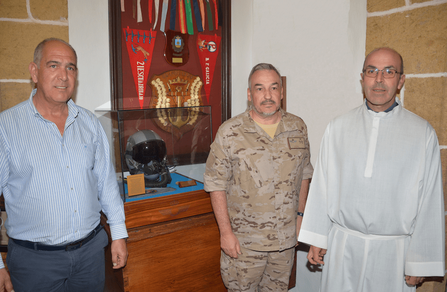 Entre los objetos ofrendados, destaca por su originalidad un casco de vuelo perteneciente al Ala 46, que se exhibirá en el Museo Sacro del templo.