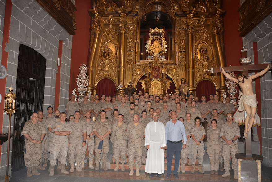 El grupo, encabezado por el general jefe del Mando Aéreo de Canarias, Francisco Javier Vidal Fernández, fue recibido por el alcalde Sergio Nuez Ramos y el párroco de la Basílica, Jorge Martín de la Coba, quienes dirigieron unas palabras de gratitud a los militares por la visita.