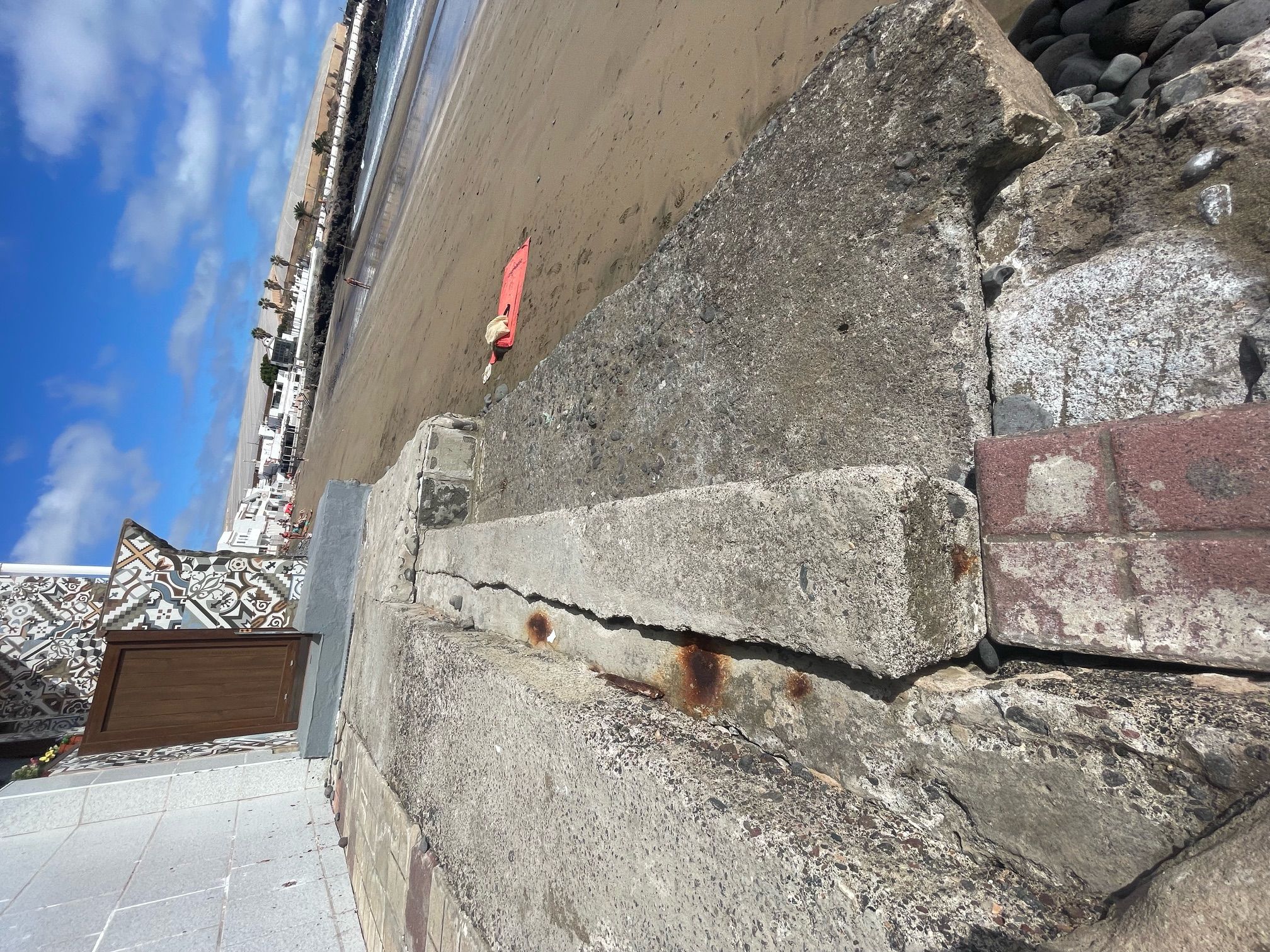 “Han sido arrancados los escalones y el muro está con un gran deterioro tras el impacto de las olas, siendo un peligro para todos los residentes y los usuarios de la playa”, alerta una vecina.