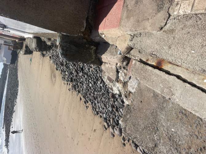 El temporal que azotó en los últimos días la costa de Telde con fuerte oleaje ha provocado diversos daños en la playa de Ojos de Garza.