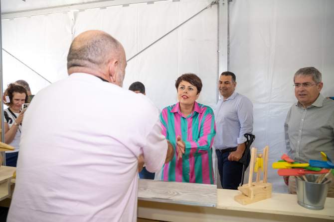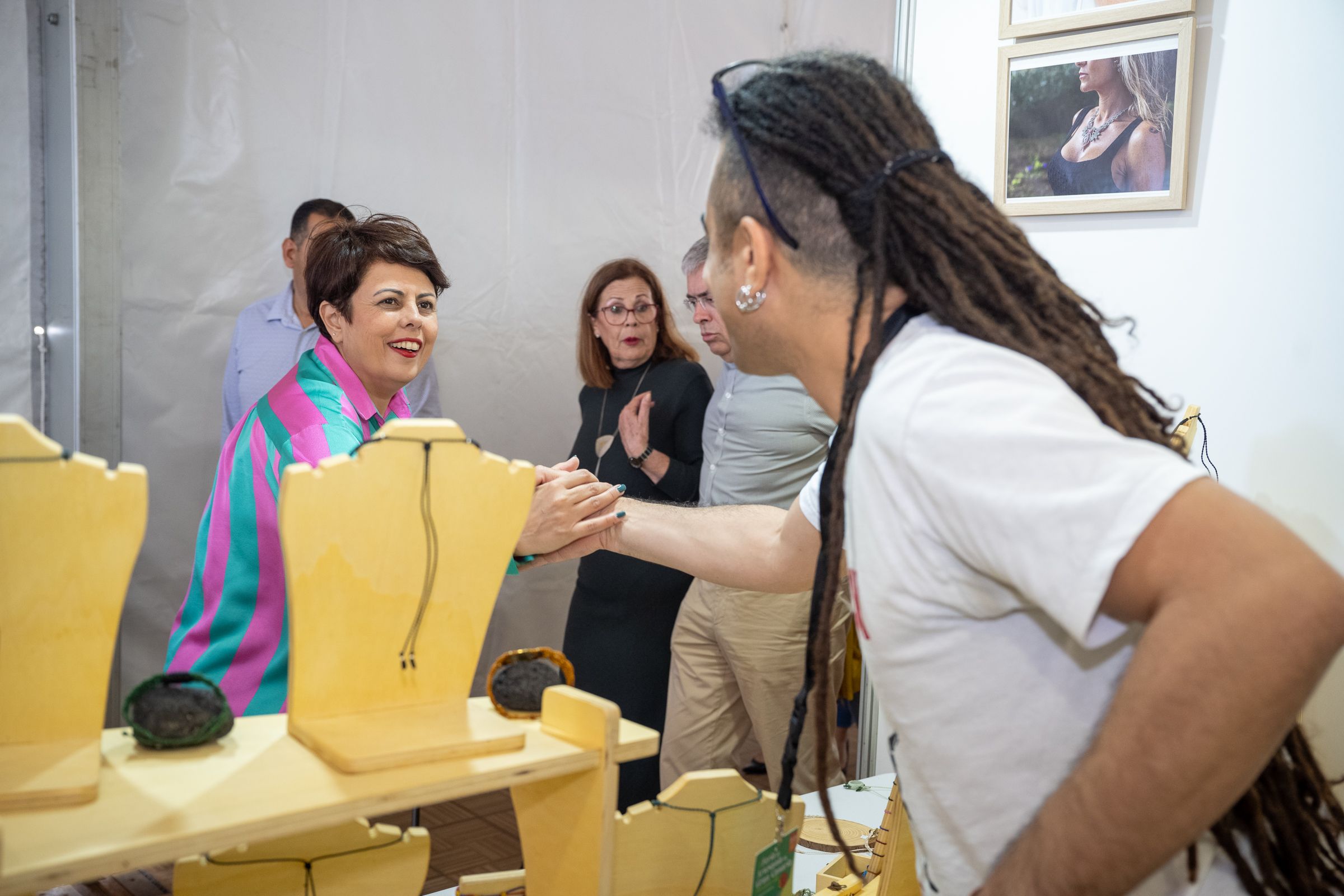 La consejera de Desarrollo Económico, Industria, Comercio y Artesanía del Cabildo de Gran Canaria, la teldense Minerva Alonso, acompañada del alcalde del Ayuntamiento de San Bartolomé de Tirajana, Marco Aurelio Pérez, la directora gerente de la Fedac, Águeda Hernández, y la directora general de Infecar, Feria de Gran Canaria, Natalia Santana, ha recorrido cada uno de los estands presentes en esta cita, dándoles la bienvenida a esta edición y conociendo de primera mano sus piezas.