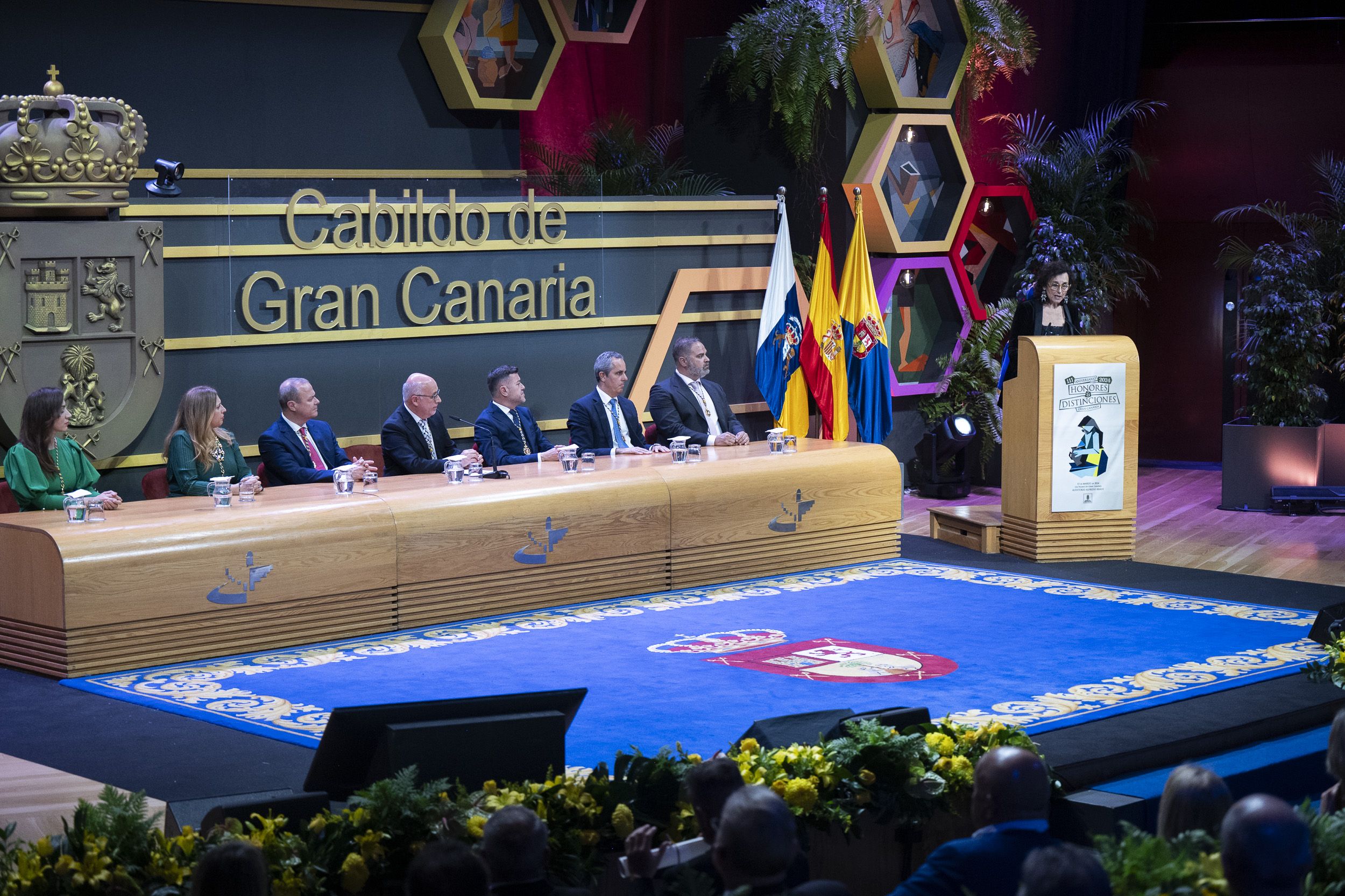 Desde esta noche, es Hija Predilecta de Gran Canaria la ex directora de la Casa de Colón, Elena Acosta, una decisión que atiende a su implicación en el ámbito cultural de la isla y porque convirtió la Casa de Colón en un museo abierto y un relevante centro de divulgación a nivel internacional. El reconocimiento como Hijo Predilecto recayó también, a título póstumo, en el tenor Alfredo Kraus por su condición de canario universal como uno de los principales tenores líricos de todos los tiempos.