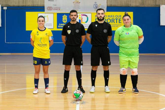 Árbitros: Alejandro Santana y Francisco Medina, del Colegio de Las Palmas, auxiliados por Laura Moreno. Amonestaron por las locales a Vir y por las visitantes a Melissa, Irene, Genesis.