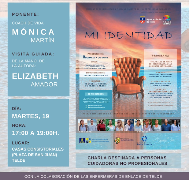 La sala de exposiciones de la Concejalía de Cultura, que lidera Juan Martel, ubicada en las Casas Consistoriales de Telde acogerá, mañana martes 19 de marzo, la charla Re-encuentra tu esencia, enfocada en la visibilización de las personas cuidadoras en Canarias. La actividad, que comenzará a las 17.00 horas y que tendrá entrada gratuita hasta completar aforo, está incluída en la muestra Mi identidad, de la artista Elizabeth Amador, abierta al público en el mismo espacio.