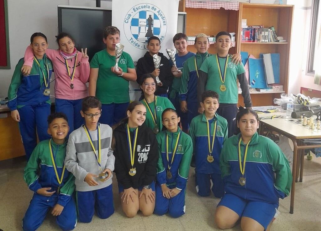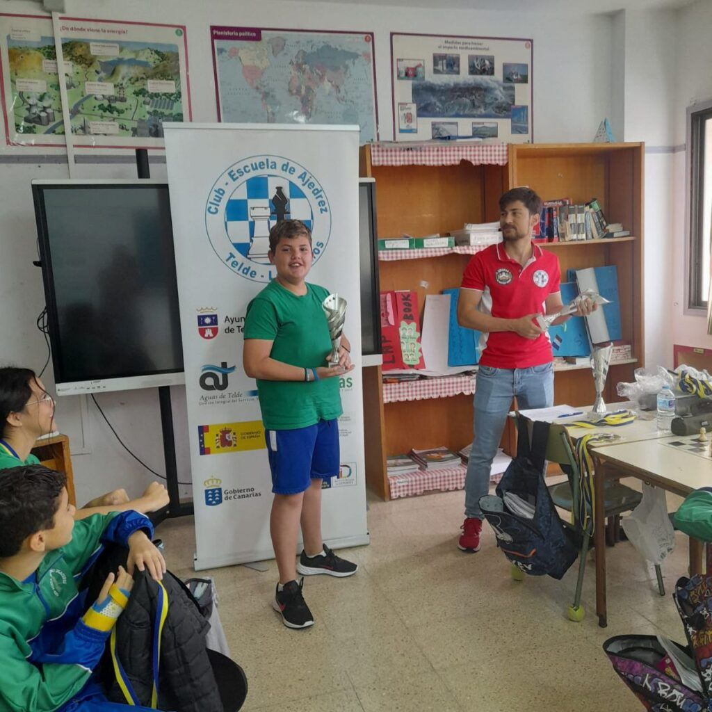 El CEIP Poeta Montiano Placeres realizó días atrás la entrega de medallas y trofeos a los participantes del Club Escuela de Ajedrez Telde-Los Llanos. El alumnado de 5º y 6º de Educación Primaria recibió estas distinciones por su participación, interés y buen trabajo desarrollado en las sesiones semanales para fomentar el ajedrez en la escuela, a través de su monitor Ricardo.