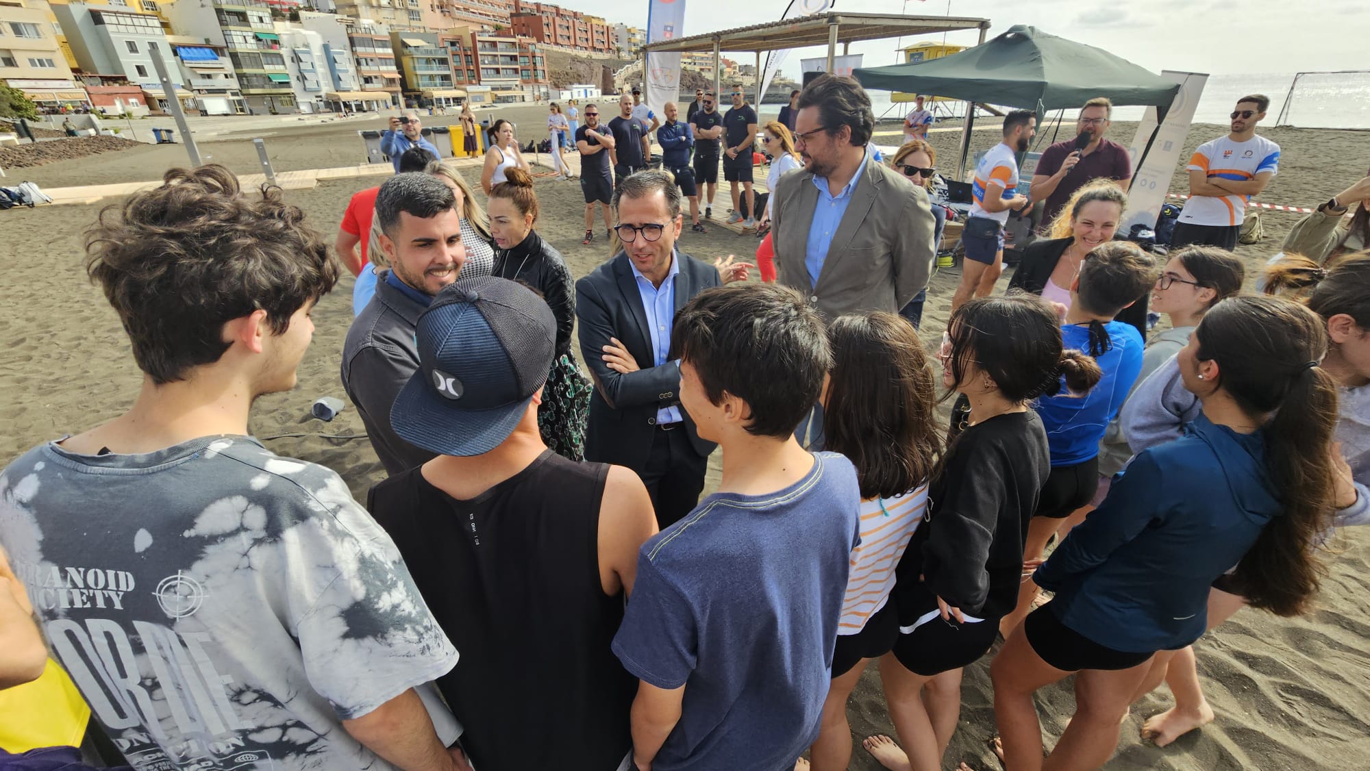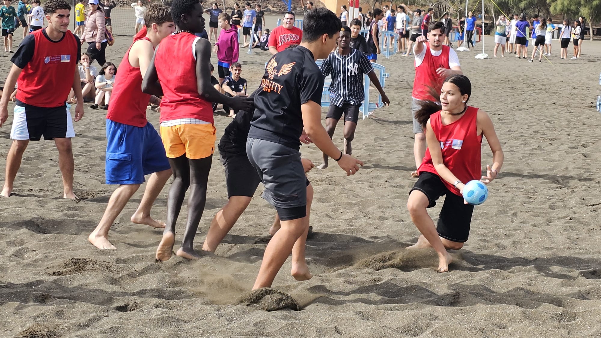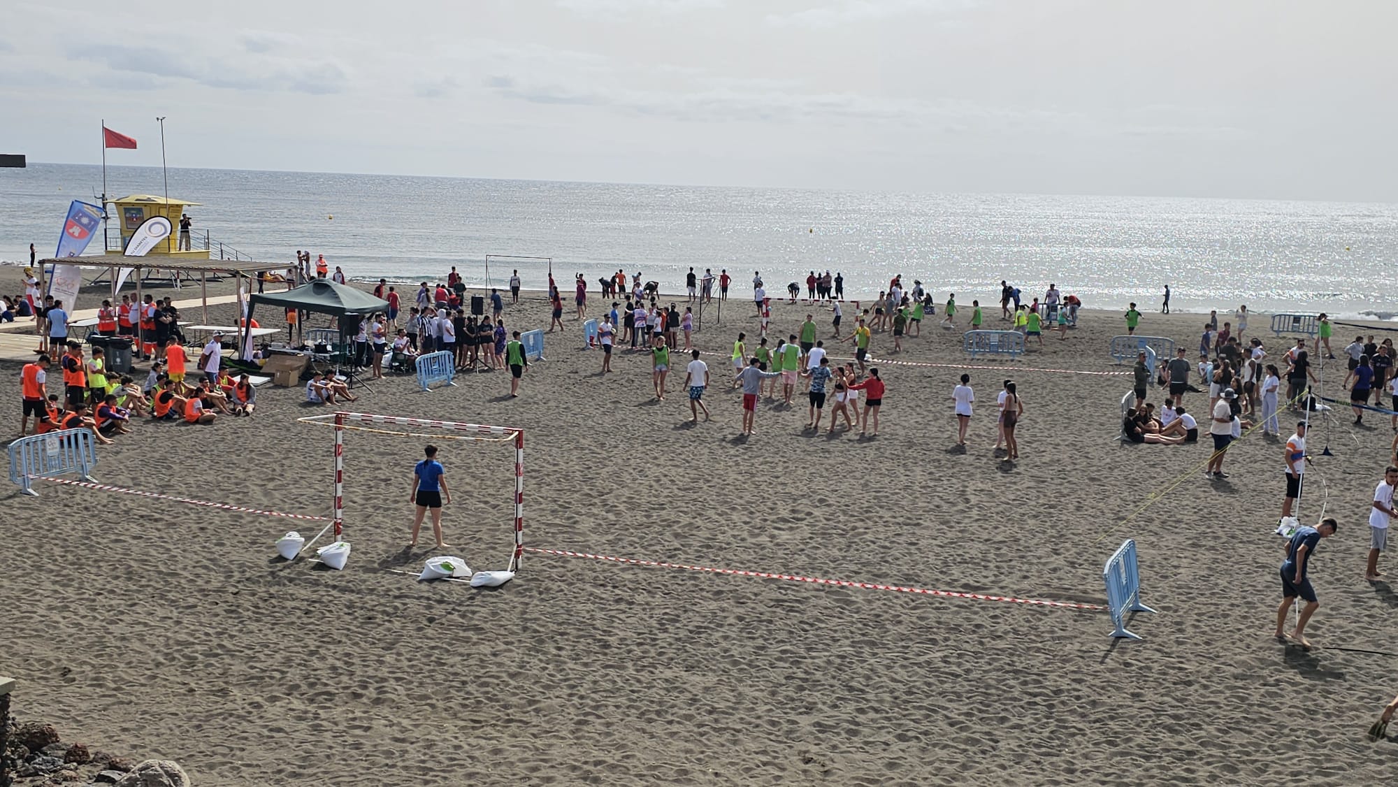 El acontecimiento, que tuvo lugar durante la mañana de hoy martes en la playa de Melenara, acogió a unos 300 escolares de entre 12 y 18 años, de los IES José Arencibia Gil, Vecindario y Tamogante. Los estudiantes disputaron mini torneos de fútbol, voleibol y balonmano en la arena de la cala de Neptuno.