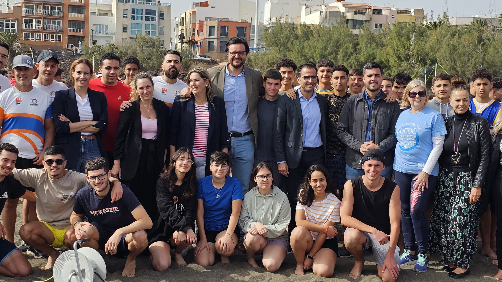 El Ayuntamiento de Telde, a través de la implicación de las concejalías de Deportes y Playas, dirigidas por Cristhian Santana y María Calderín, respectivamente, ha colaborado en la jornada, que comenzó a las 9.00 y llegó a su fin a las 13.00 horas, en la que tanto jóvenes con diabetes como aquellos que no padecen la enfermedad se unieron por la causa para dar a conocer la estrecha relación existente entre la actividad física y la mejora de la calidad de vida de las personas con dicha patología. Además de los concejales implicados y otros representantes del gobierno local, entre ellos el vicealcalde del municipio, Sergio Ramos, estuvo presente el viceconsejero de Deportes del Gobierno de Canarias, Ángel Sabroso.