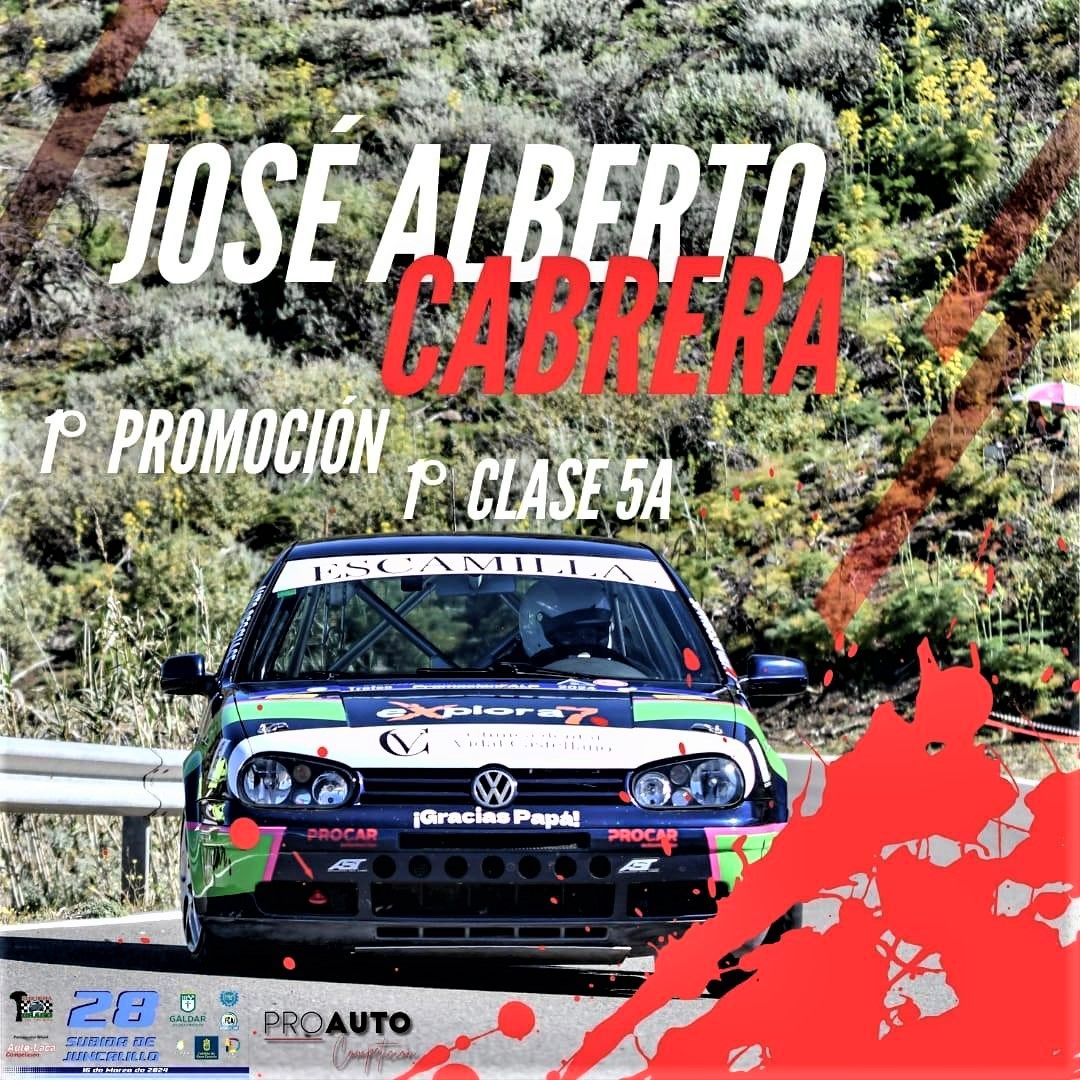 La Subida a Juncalillo se celebró en el municipio de Gáldar el pasado sábado 16 de marzo, bajo la organización de la Escudería Drago y con la colaboración del Ayuntamiento. La prueba registró una participación de 55 equipos. Cabrera compitió a los mandos de su Volkswagen Golf IV GTI 1.8 Turbo.