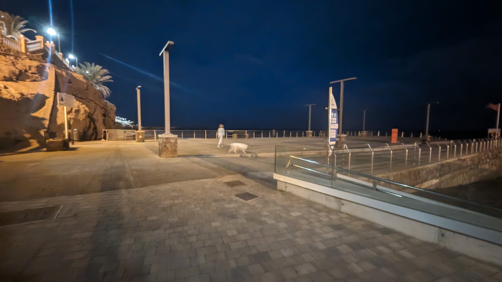 Vecinos del litoral de Telde denuncian que el muelle de Melenara está a oscuras, ya que no funciona ninguna de las luminarias colocadas en este espacio.