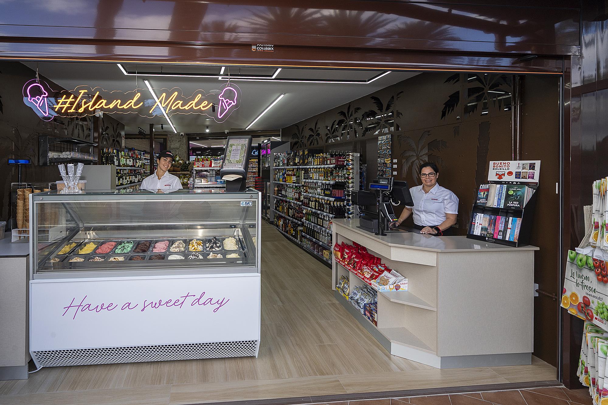 Mediante la inauguración del nuevo punto de venta, el primero que la cadena abre este 2024, SPAR Gran Canaria continúa impulsando la creación de empleo, con 5 personas trabajadoras de nueva contratación, que dispensarán un servicio profesional y cercano en la tienda. SPAR Express Oasis abre sus puertas con una imagen integrada con el entorno del palmeral del Oasis y la Charca de Maspalomas, destacando la presencia de las palmeras canarias en la decoración y estética del punto de venta. La tienda cuenta con un surtido variado, una sección de frutería, que dispone de productos frescos locales, además de una sección de heladería, gofres y crepes para llevar, entre otros espacios.