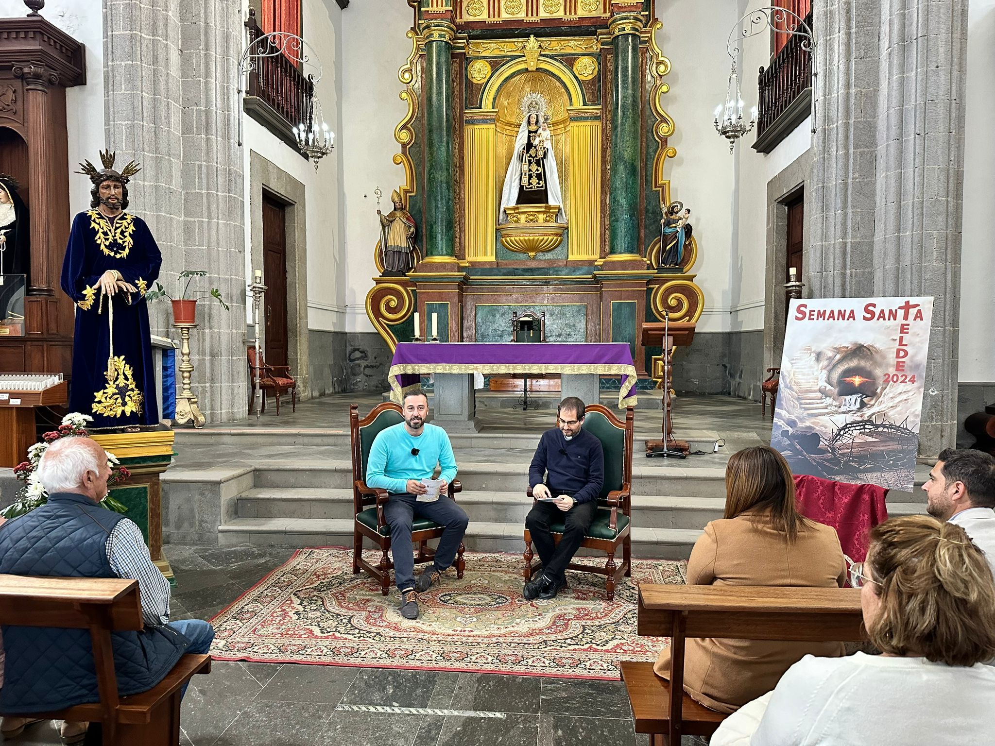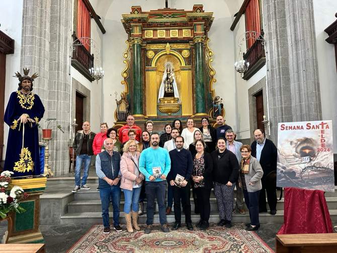 El alcalde de Telde, Juan Antonio Peña, y el vicario episcopal del Sur de Gran Canaria, Antonio Juan González, presentaron en la mañana de este viernes, en la parroquia de San Gregorio, la programación de la ciudad para celebrar la Semana Santa, con la novedad de que este año todas las parroquias del municipio se han aunado, por primera vez, en un mismo calendario de actos.