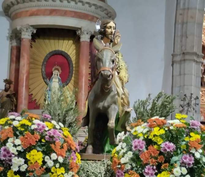 Según el programa elaborado por la parroquia de la que es titular el sacerdote Antonio Juan López, los actos comenzarán a las 11.30 horas con la bendición de ramos en la plaza y la posterior celebración de la eucaristía en el interior del templo matriz de la ciudad. La procesión, que recorrerá las calles del entorno, reunirá a decenas de fieles, tanto niños como adultos, que acompañarán fervorosamente la escultura del Señor montado en la burrita.