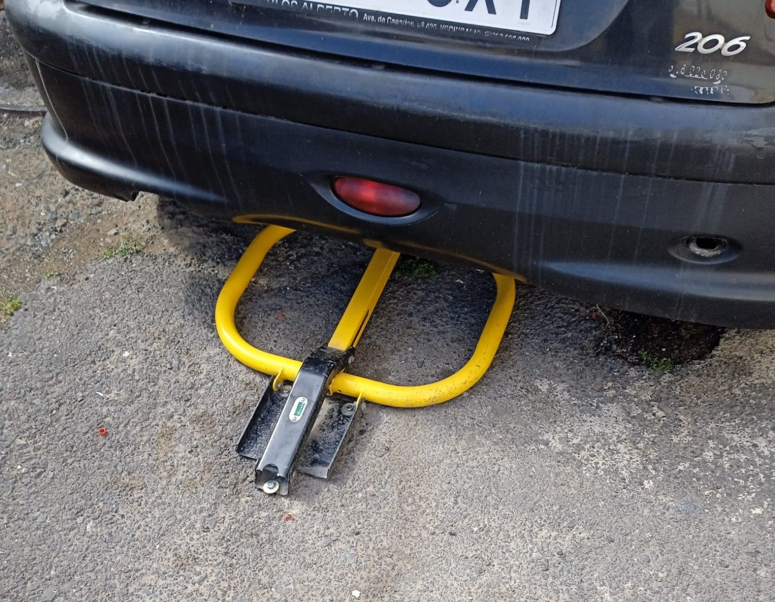 Vecinos de la calle Blas de Otero, en Jinámar, denuncian que un residente ha colocado un cepo para que nadie aparque en un sector de esta vía y así solo él puede dejar su coche.