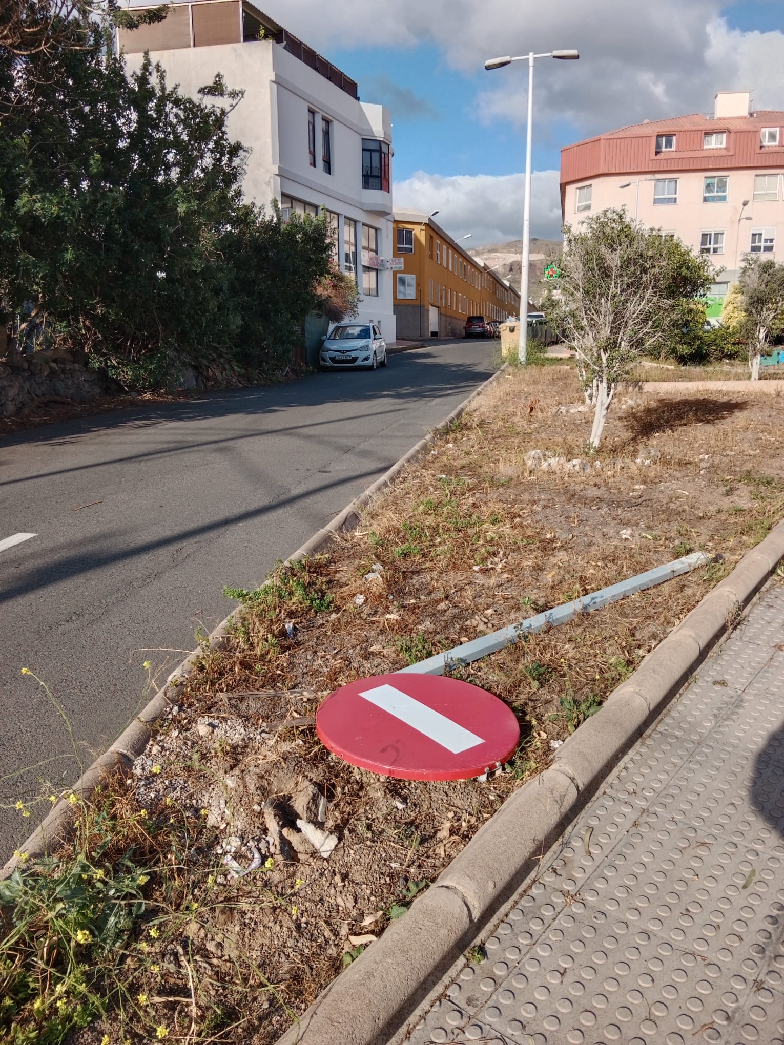 La Asociación de Vecinos La Concepción de Jinámar denuncia que la señal dirección prohibida ubicada a la entrada de la calle Ramón de la Cruz ha sido arrancada de su base nuevamente y se encuentra tirada sobre el parterre.