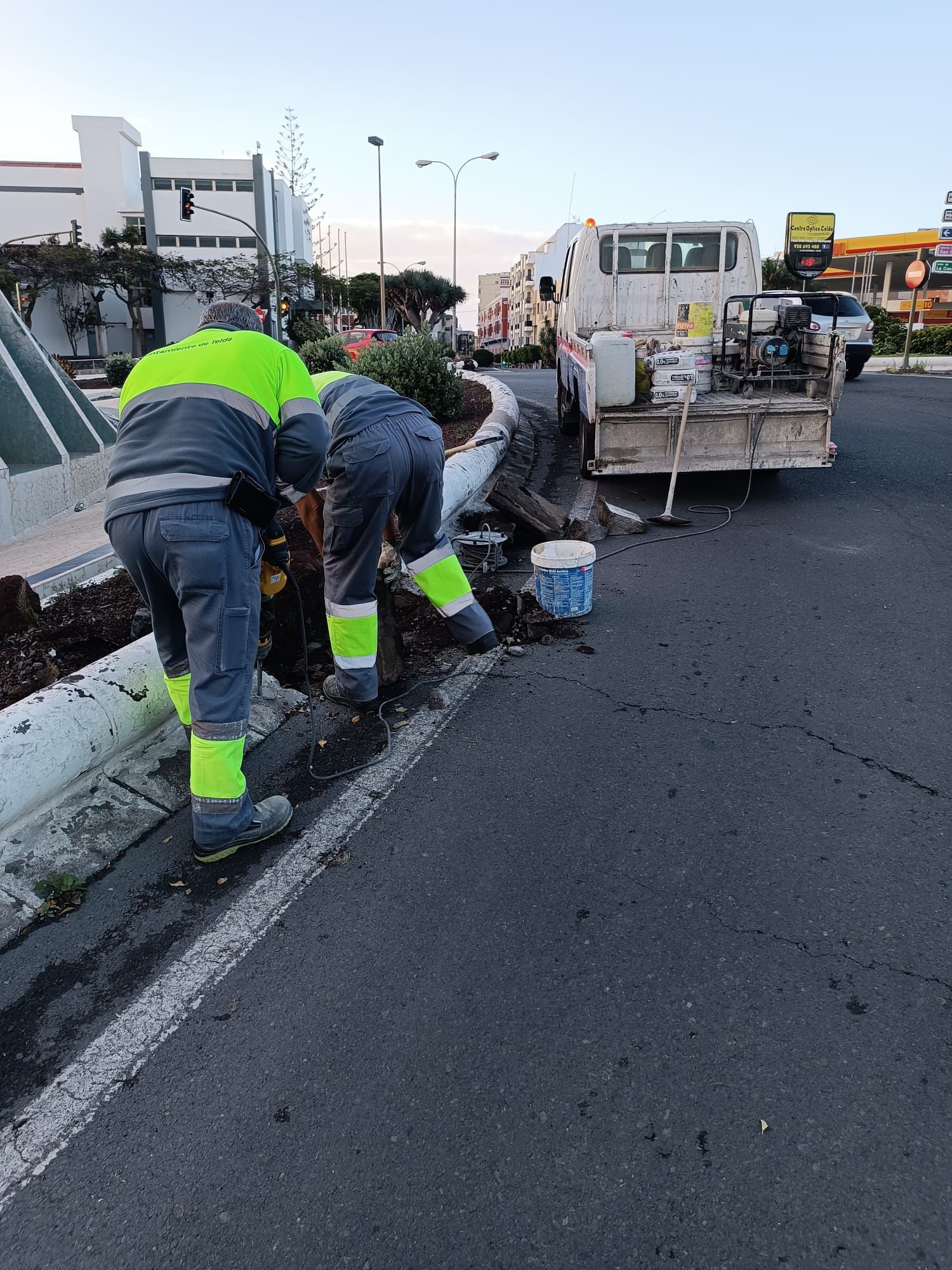 La Concejalía de Vías y Obras del Ayuntamiento de Telde ha comenzado en la mañana de este miércoles a reparar un tramo del bordillo de la rotonda de Daora, en la entrada a la ciudad, que fue dañado en un accidente de tráfico.