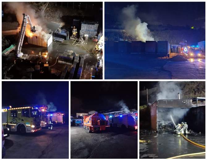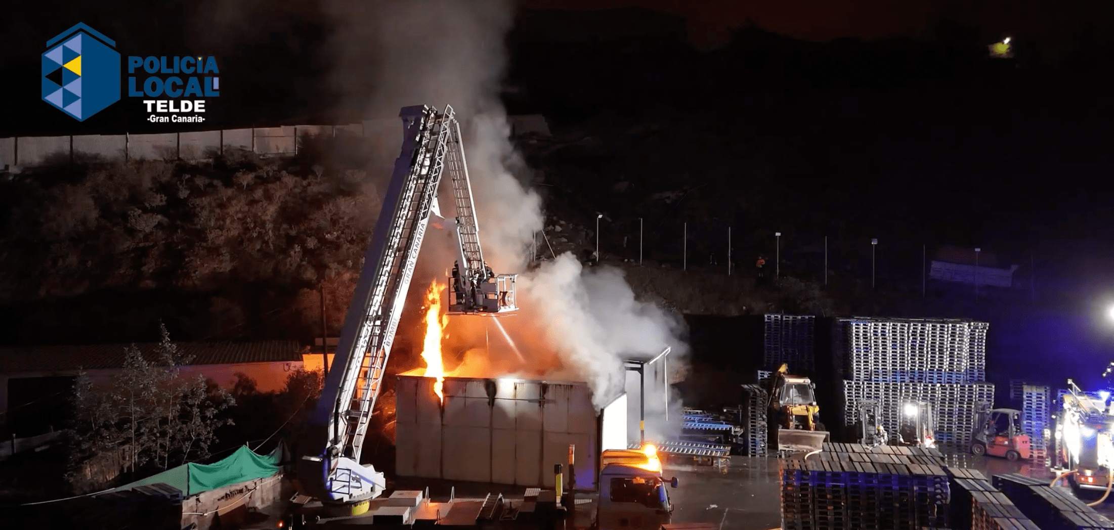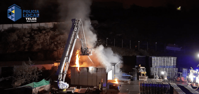 Los servicios de emergencias se movilizaron a las 1.20 horas de la madrugada de este miércoles hasta la calle Secretario Espino para sofocar un incendio producido en una nave de palets ubicada en Maipez, en la zona industrial de Jinámar. Los bomberos del consorcio de Telde, asistidos por sus compañeros de Arinaga y Arucas, emplearon alrededor de 70.000 litros de agua para reducir las llamas, logrando aminorar las consecuencias del accidente, producido por la combustión de un horno ubicado en el interior del recinto afectado.