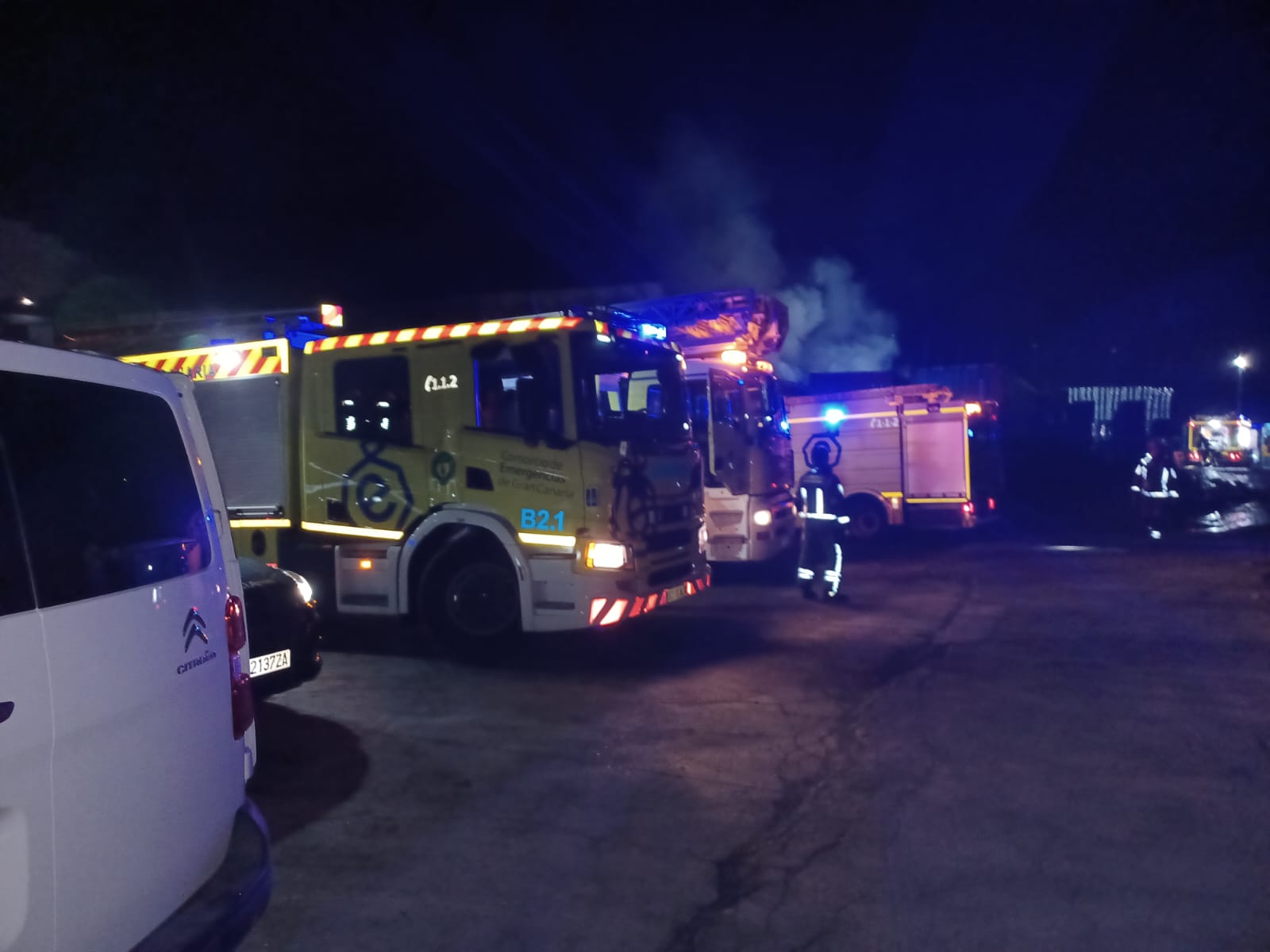 Al lugar, en el que también se personaron Policía Local, Policía Nacional, Protección Civil y una ambulancia, llegó un total de cinco camiones del consorcio, más la escala, y una cuba de agua del Ayuntamiento. Así, la intervención finalizó a las 6.00 horas, quedando un retén de bomberos en el espacio y lamentando únicamente daños materiales.