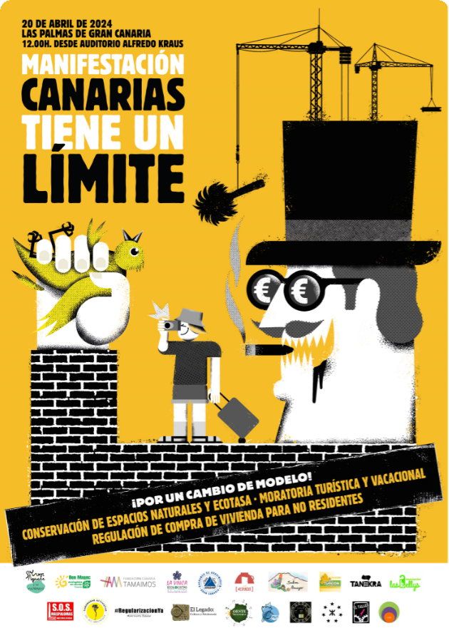 El próximo sábado 20 de abril saldremos a la calle para volver a reclamar lo que es de sentido común; controlar una situación que nos ahoga y nos expulsa de nuestro propio territorio. Las dos capitales canarias ya tienen convocadas sus movilizaciones, a las que pronto se unirán el resto de islas. Es el momento de reclamar un cambio de modelo y de volver a gritar, desde todas las islas, ¡Canarias tiene un límite!