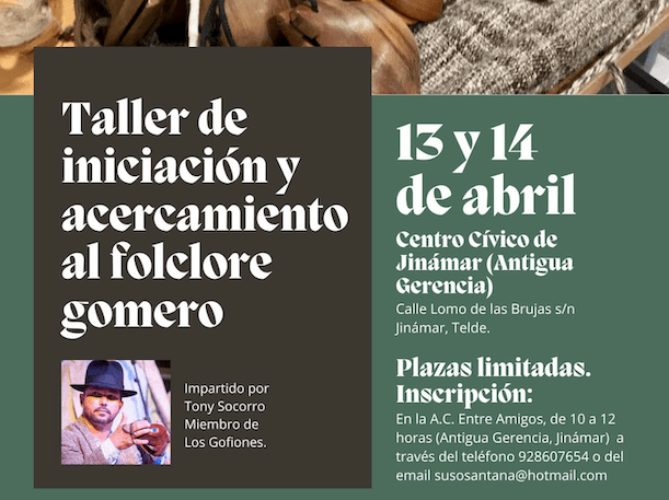 El Centro Cívico de Jinámar (antigua Gerencia) acoge los días 13 y 14 de abril un taller de iniciación y acercamiento al folclore gomero impartido por Tony Socorro, miembro de Los Gofiones.