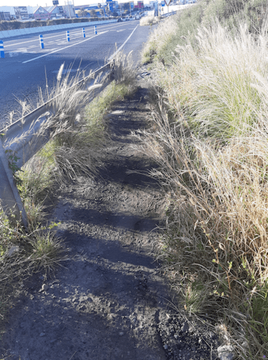A su vez, advierten, existe peligro para los viandantes que caminan junto al margen de la carretera. Y es que carecen de una zona peatonal en condiciones. Se tienen que conformar con un camino rodeado de vegetación (rabos de gato) y que no está preparado para caminar.