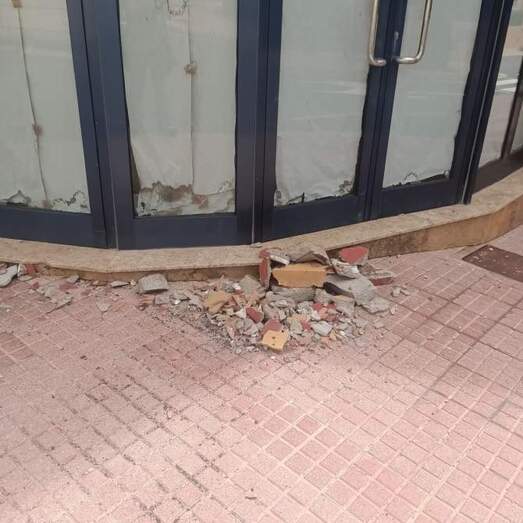 Sin embargo, desde entonces, los restos permanecen en la acera y no se ha precintado el inmueble, ni ha acudido nadie para limpiarlo ni para realizar una inspección para saber la situación del edificio. Por ello, piden a las autoridades municipales que intervengan ya que desconocen el estado de la infraestructura y si hay riesgo de nuevos desprendimientos.