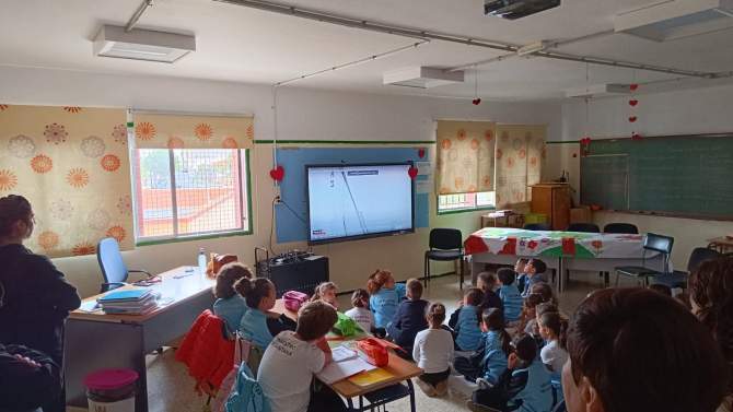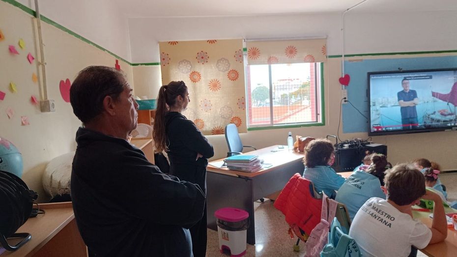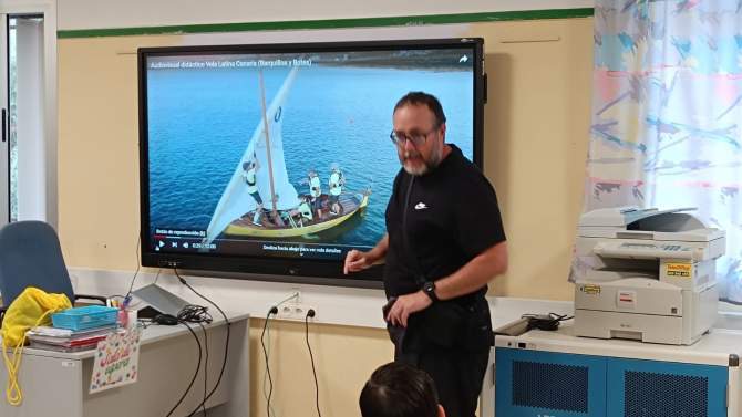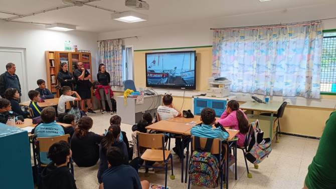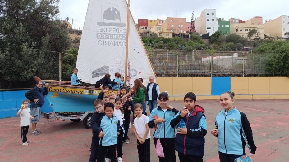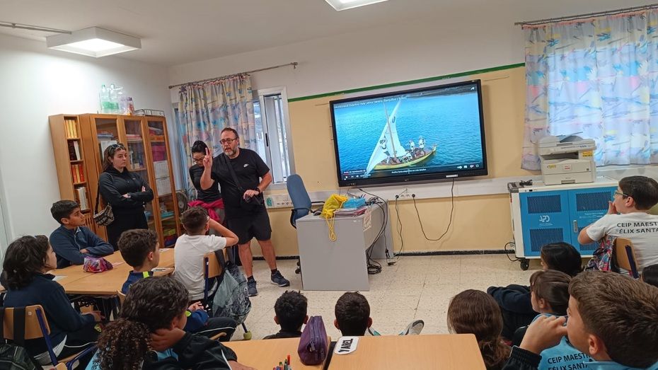 Los escolares del Maestro Félix Santana disfrutaron de una proyección audiovisual sobre las maniobras y vivencias de los practicantes de este juego tradicional náutico, pudiendo además, ver en su centro un barquillo de vela latina canaria.