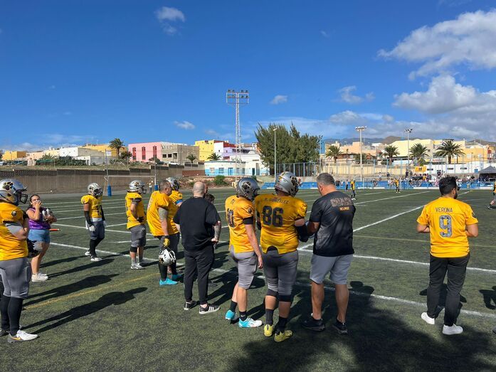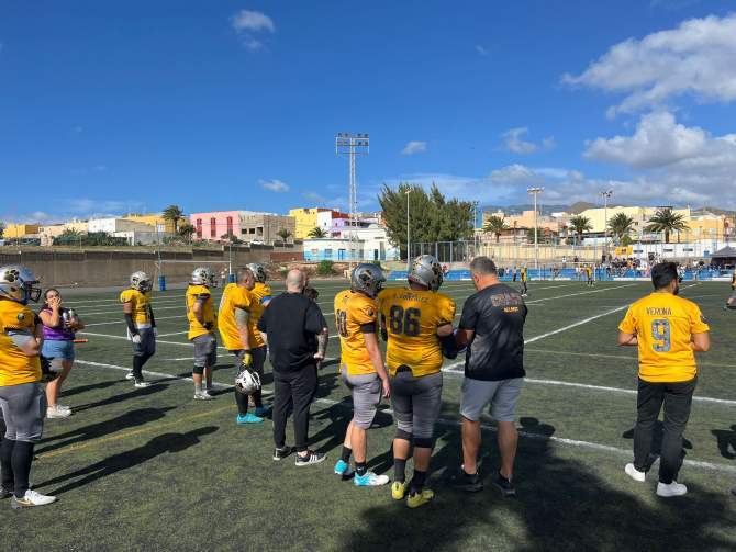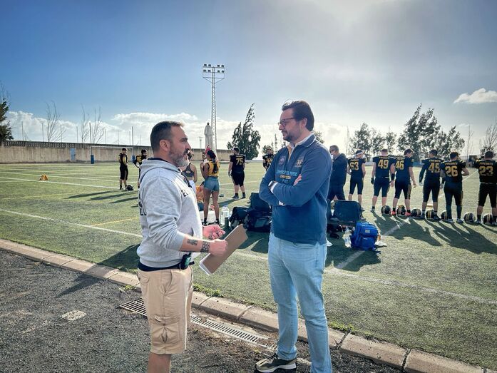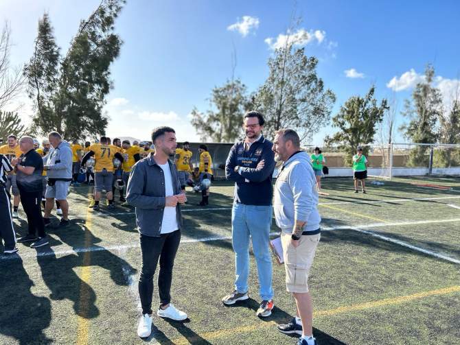 El vicealcalde de Telde, Sergio Ramos, estuvo presente en el sorteo del saque del partido disputado el domingo en el campo municipal de fútbol de Ojos de Garza, en la sexta y última jornada de la Liga de Fútbol Americano (LNFA), Serie B.