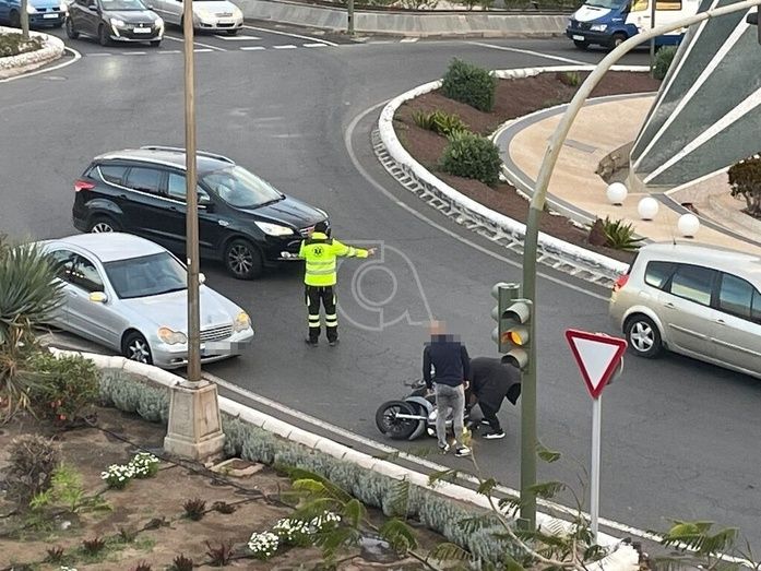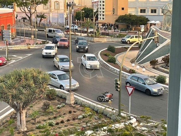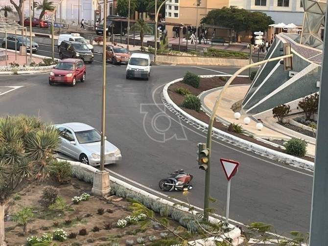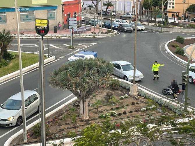 Un turismo y una moto han colisionado hace escasos minutos en la rotonda de Daora, en la entrada al municipio de Telde, a la altura del teatro Juan Ramón Jiménez. El motociclista ha resultado herido leve.