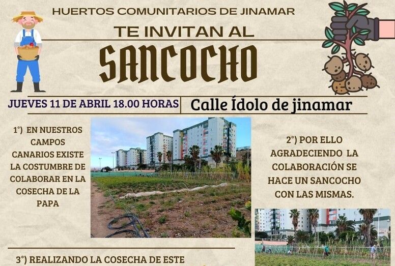 Los huertos comunitarios de Jinámar organizan este jueves, a las 18.00 horas, un sancocho en el espacio ubicado en la calle Ídolo de Jinámar.