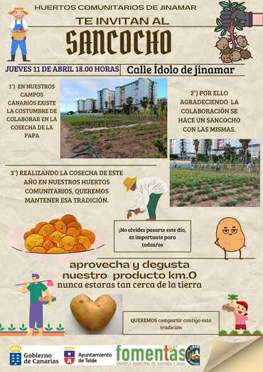 Esta iniciativa, enmarcada en el Plan Integral de Jinámar, pretende mantener la costumbre de agradecer la colaboración en la cosecha de papas en los campos canarios con un sancocho elaborado con la recolección de estos tubérculos.