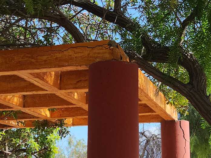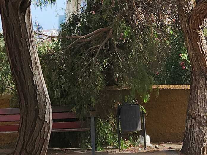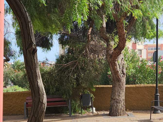 Vecinos de Las Huesas denuncian que la rama de un árbol está presionando la estructura de madera ubicada en el parque ubicado en la calle África, lo que le ha provocado grietas. Asimismo, advierten que hace dos semanas se partió una rama que aún sigue colgando.