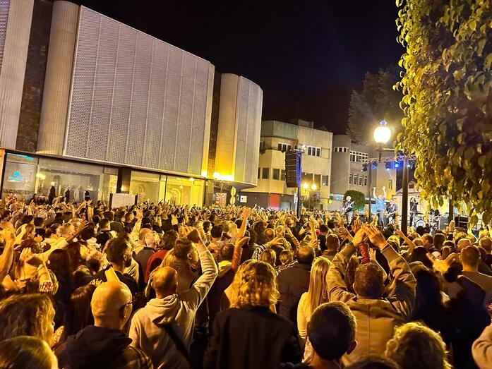 Por la tarde-noche, miles de personas se congregaron en las inmediaciones de la plaza de San Gregorio, en la Avenida de la Constitución y en las calles aledañas para vibrar y disfrutar con la música de Los Coquillos, Salvapantallas y DJ Santi Alonso, quienes se subieron al escenario instalado para la ocasión junto a la escultura del betunero.