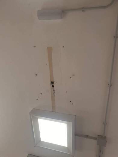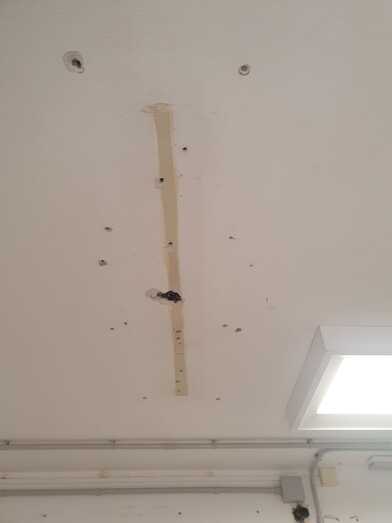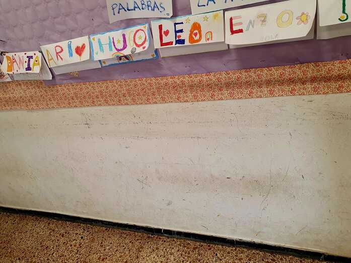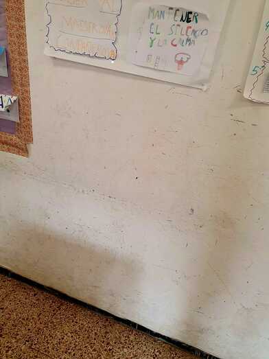 Un padre de un alumno del colegio Amelia Vega, en el barrio de El Ejido, se queja del lamentable estado que presenta el aula de su hijo, con falta de pintura y agujeros en los techos.