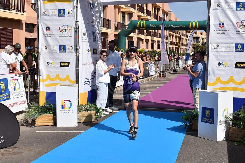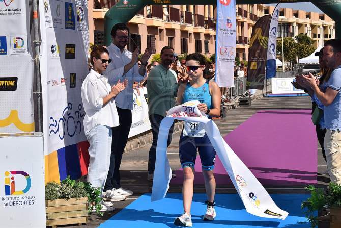En segunda posición, con un tiempo de 1 hora 7 minutos y 56 segundos (1h07’56”), la triatleta del club Natación Las Palmas, Lucía Pérez Almeida, no se lo puso fácil a la campeona, con unas transiciones muy rápidas que marcaron la diferencia. La triatleta de ChamoDiaz Training, Mia Leadbeater ha sido la tercera clasificada en el podio femenino, con una natación en la que fue indiscutible y que le regaló varios segundos de ventaja para el bronce, acumulando un tiempo total de 1 hora, 8 minutos y 10 segundos (1h08’10”).
