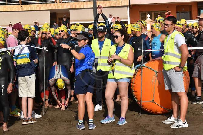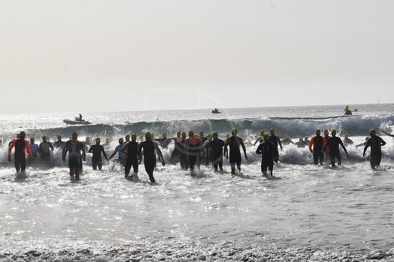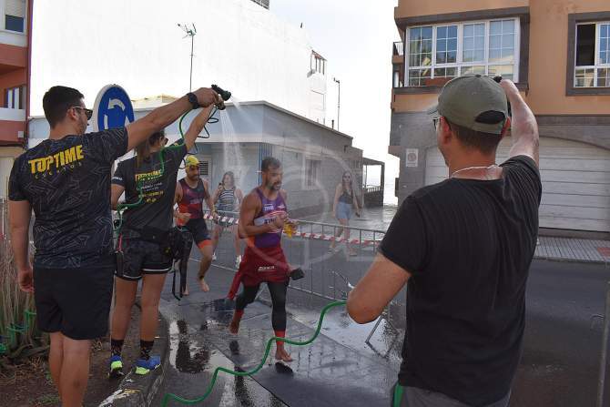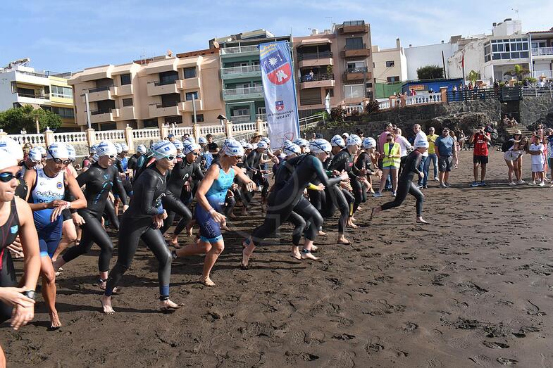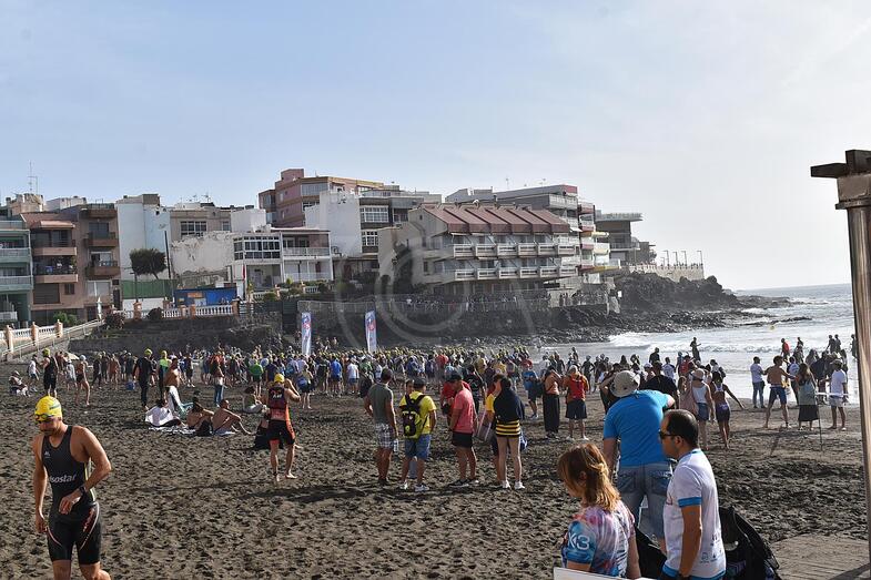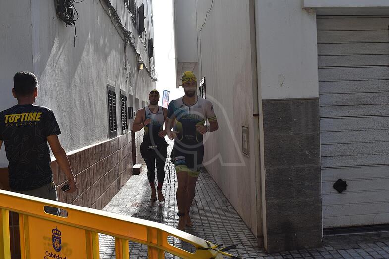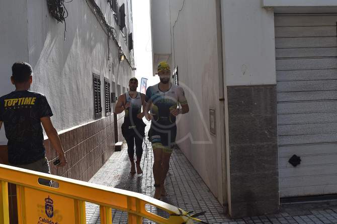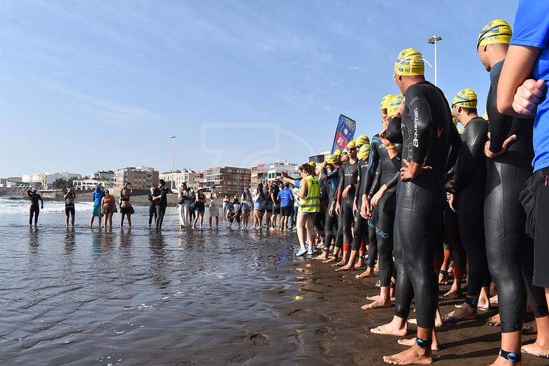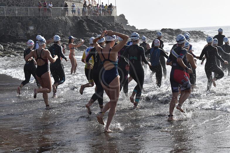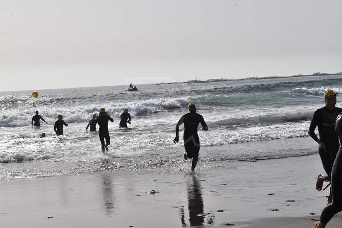 La competición comenzó puntualmente a las 10.00 horas con la salida de los atletas masculinos y cinco minutos después, las competidoras femeninas tomaron la partida. Los participantes, incluidos algunos de los mejores triatletas de la isla y de otras regiones de España, tuvieron que completar un recorrido que empezó con 750 metros de natación en las aguas ligeramente rizadas de Salinetas.
