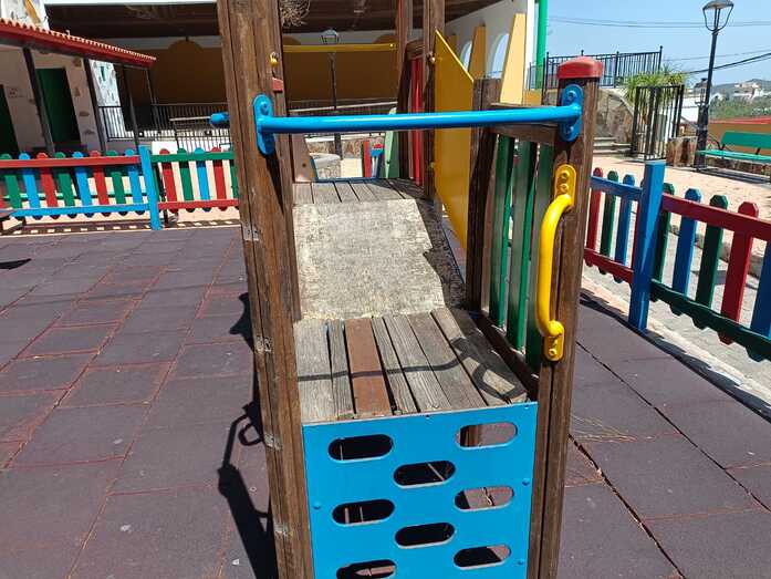 Asamblea Valsequillera denuncia el estado en el que se encuentra el castillo del parque infantil de Tenteniguada. En una visita reciente, los concejales de AV pudieron comprobar el peligro que existe en una de las plataformas de esta atracción debido a que la mayoría de las tablas que hacen las veces de suelo (en alto) están sueltas, partidas y sin anclajes.