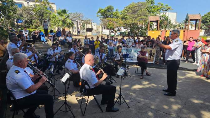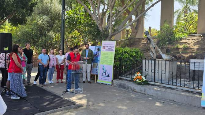 Guadalupe Santana leyó un poema dedicado a la causa y la Banda Municipal de Música de Telde puso las melodías a un evento que congregó a más de medio centenar de personas en el parque urbano.