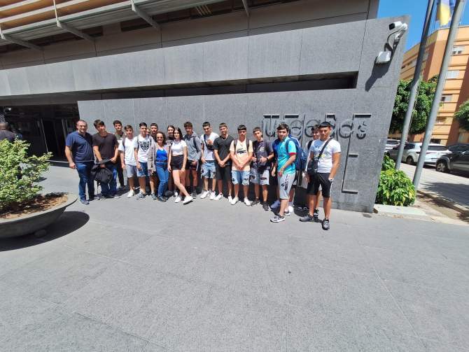 Los jóvenes, acompañados por dos profesores, asistieron a juicios de delitos leves celebrados en el Juzgado de Instrucción número 2 de Telde bajo la dirección de la magistrada Cristina Sbert Pinilla y conocieron las tripas de la sede judicial con una visita a los calabozos guiada por la Policía Nacional.