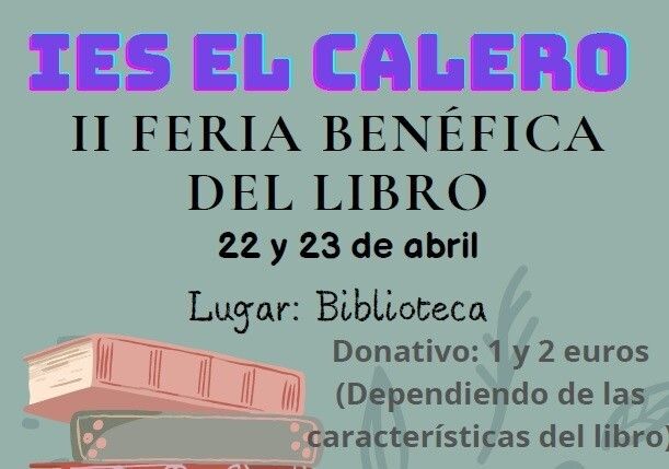 El IES El Calero celebra los días 22 y 23 de abril, por segundo año consecutivo, la Feria Benéfica del Libro, que ha sido posible gracias a las donaciones altruistas del profesorado y del alumnado.
