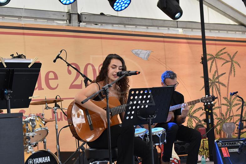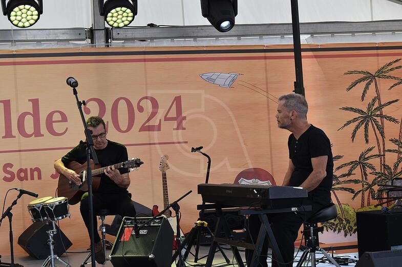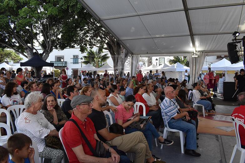 Simultáneamente, la plaza de San Juan se llenó de melodías gracias a los alumnos y profesores de la Escuela Municipal de Música, Danza y Teatro de Telde, que ofrecieron un espectáculo musical bajo la gran carpa de la feria.