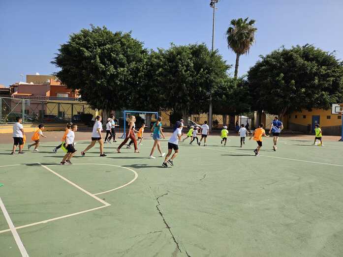 Posteriormente, separados por grupos, alumnado de Primaria, profesorado y familia, pudieron disfrutar de diferentes juegos preparados por la profesora de Educación Física del centro, entre ellos Pelota sentada, Piedra, papel o tijera, Saltando entre aros y Captura la bandera. Y para los más pequeños había también actividad y diversión: Circuito con triciclos y bicis, Un, dos, tres, caravana es, Atrapa mi colita, Circuito de obstáculos con bancos, colchonetas, aros y cuerdas…