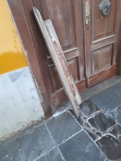 Vecinos de San Juan alertan del deterioro del inmueble que albergó el Centro de la Mujer en San Juan, ubicado en la calle León y Castillo, 1, ya que estos días se han caído parte de los marcos de madera de las ventanas del segundo piso.